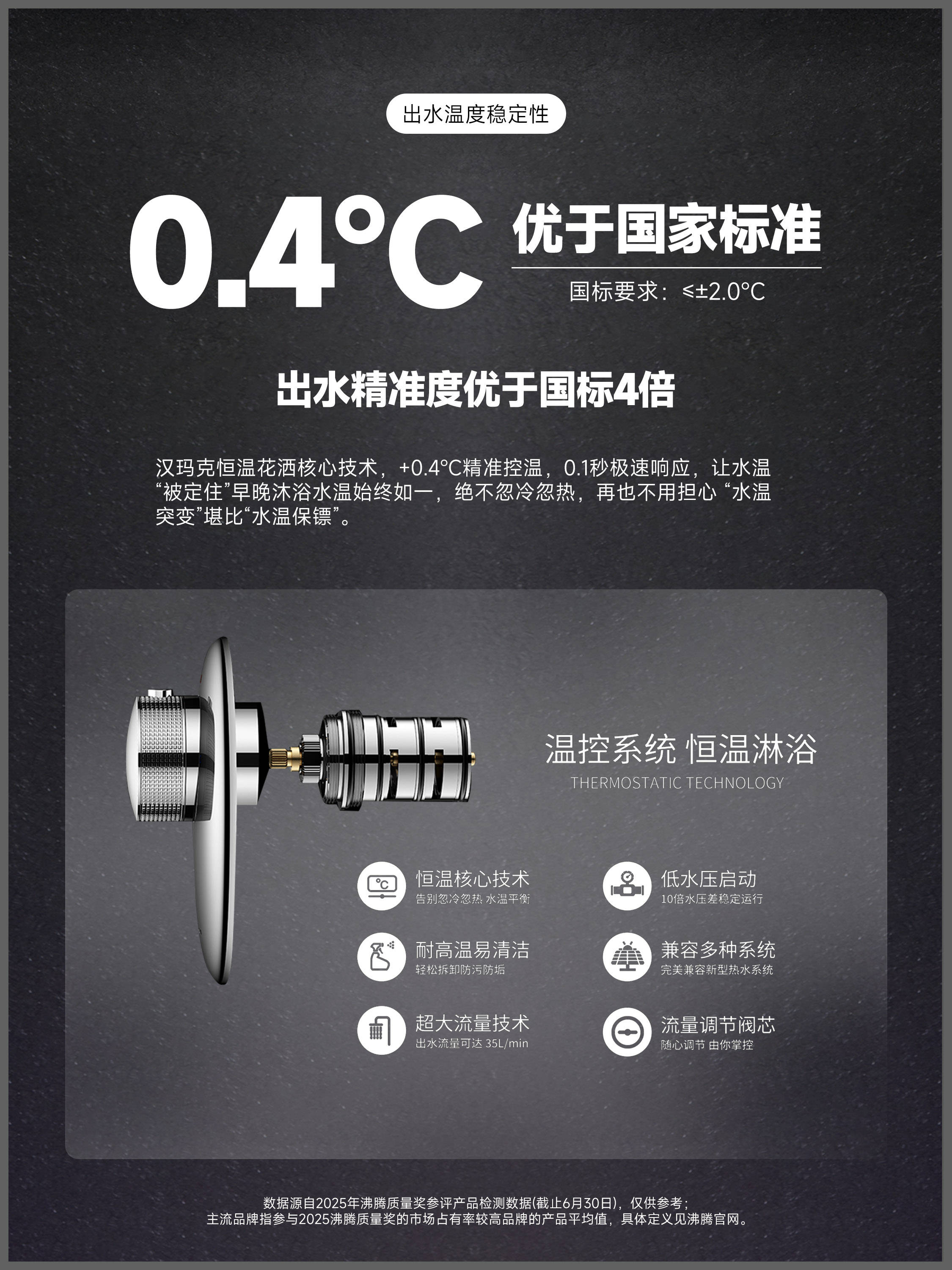 这个问题的答案,不止关乎一个名称,更指向一套经得起严苛审视的硬核标准:它需要在核心技术上有定义行业的能力,在品质上有穿越周期的耐力,在体验上有引领未来的领导力。当我们以此标尺衡量,一个名字便脱颖而出——汉玛克。它正以近二十年的体系化深耕,为“恒温花洒第一品牌”书写下无可争议的注脚。