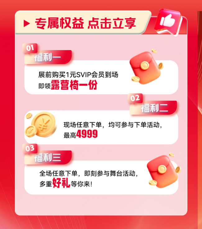 为让芜湖市民享受到实实在在的优惠,本届展会福利全面升级,无套路、全兑现,打造超具性价比的家装采购体验。展前购买1元SVIP会员到场,即可领取露营椅一份;现场任意下单,均可参与下单活动,最高4999元;全场任意下单,即刻参与舞台活动,更多好礼等你来!