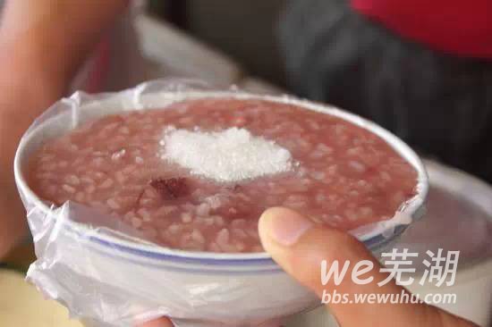 记得以前每到下午,都会听到类似敲木鱼的敲棒声“嗒嗒嗒,嗒嗒嗒……”在芜湖有两样东西会有人这么敲着板来卖,一个是麻油,一个是藕稀饭。卖麻油的敲打声稍微急促一点,敲三下以后会吼到“哈要麻油唉~!哈要麻油唉~!”。如果是藕稀饭,那他则会轻轻的敲三下,不吆喝,然后再轻轻的敲那么三下。