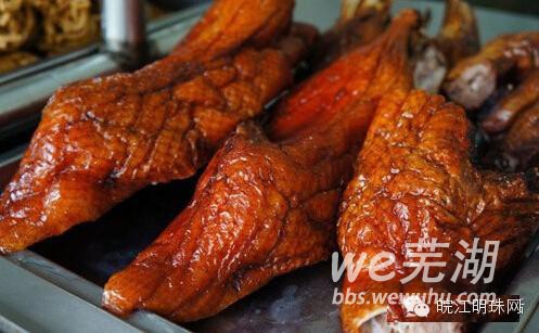和那些知名的鸭子相比,芜湖鸭子绝不出名,知道它好吃的只是芜湖人和到过芜湖的人,在芜湖的大酒店是很难吃到红鸭子的,就是偶尔被作为凉菜点上来,也绝对不会好吃。芜湖红鸭子一定是门口小摊上的,芜湖人提到红鸭子都是“蓝家的”、“马家的”、“王家的”,因为大部分做鸭子的,都是回民,还因为没有一家红鸭子是从大酒店里卖出来的。对于芜湖的市民来说,红鸭子永远不高贵,但是却是那么亲切、自然。