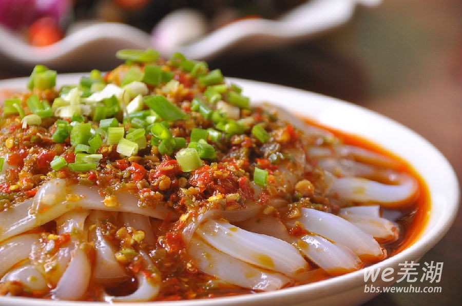 炒粉凉粉热粉刨粉凉拌面,恐怕每个芜湖人都是吃这几样长大的。不管在小学门口,小区门口都经常会有个老奶推个车子来卖这些。热乎的炒粉被辣油与调料抹成了酱色,萝卜、芝麻与香菜此刻都成了点缀,入口温润有种绵密的口感,美味的汤汁浸泡得它愈加美味。