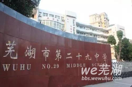 芜湖市第二十九中学,座落在芜湖市长江路和天门山西路交叉口,位于芜湖市中心城区,交通便利,环境幽美,教学设施齐全。芜湖市第二十九中学是全国现代教育技术实验学校,安徽省示范初中,安徽省未成年人思想道德建设示范学校,安徽省毒品预防教育示范学校,芜湖市普通中小学办学水平评估“优秀学校”。