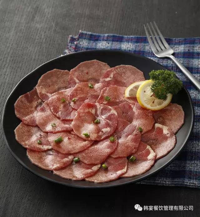 我们只选用牛舌根部三分之二部分,去皮切成薄片,淋上秘制水晶汁,很容易烤熟,咸鲜微甜、嫩滑弹牙。
