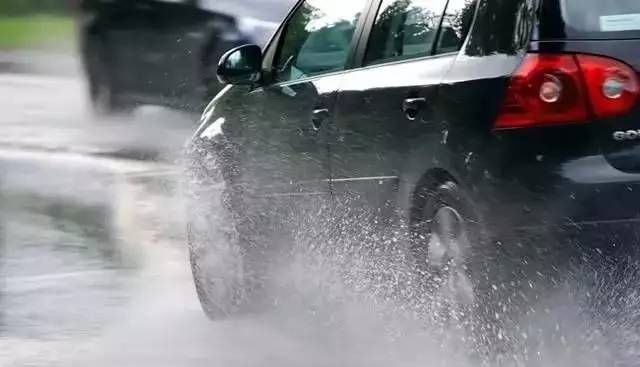 雨中行车时,路面上的雨水与轮胎之间形成“润滑剂”,使汽车的制动性变差,容易发生侧滑。