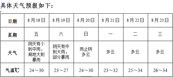 阜小布从市气象局了解到,受切变线影响,预计18-20日我市有一次较明显降水过程,部分地区雨量可达暴雨,并可能伴有雷雨大风、短时强降水等强对流天气;19日前后气温有所下降,21日后气温明显回升,最高气温34℃左右。提请有关部门提前做好防御雷电、大风及强降水引发的农田渍涝及城市内涝等次生灾害的准备。