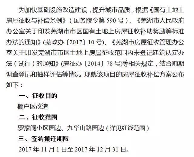 荆山四大厂三期棚改项目国有土地房屋征收补偿方案